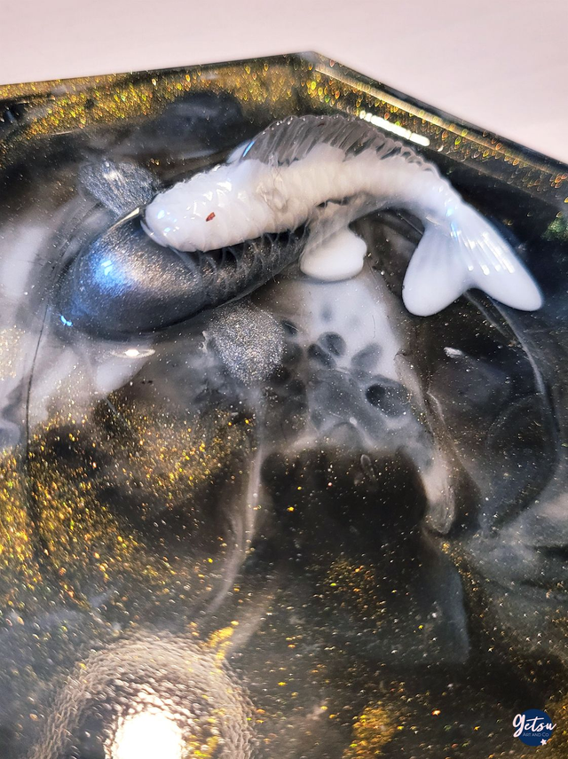 Petit vide-poche fait main en résine rappelant un point d'eau, qui peut accueillir bijoux, clefs, ou un savon dans votre salle de bain !