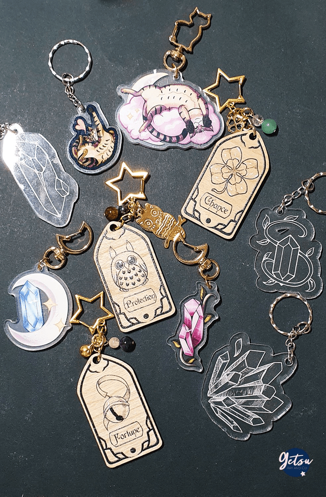 Porte-clef en acrylique de 65mm, même design des deux côtés.